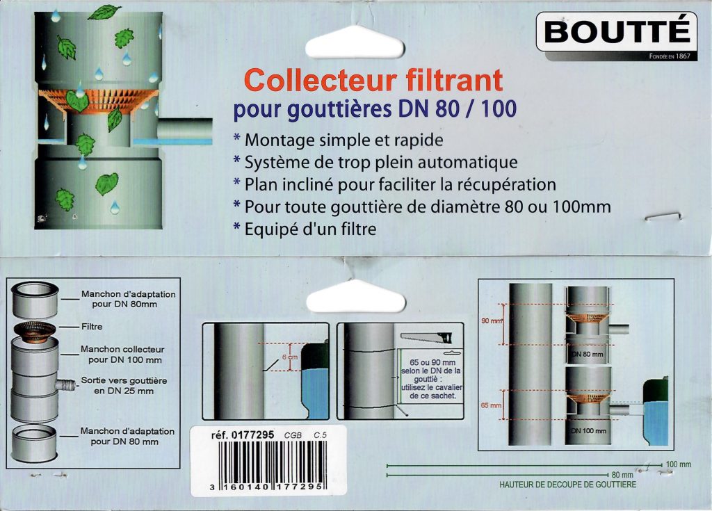 Le collecteur d’eau à fixer sur la descente de gouttière