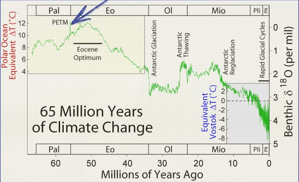 Nous autres Martiens sommes arrivés sur la terre il y a 56 millions d’années au passage entre le Paléocène et l’Éocène. c’est la période appelées PETM (Maximum Thermique du passage Paléocène Eocène )