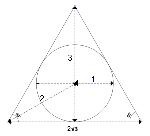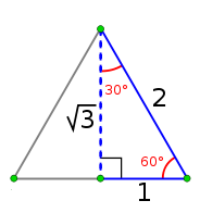 Et si le côté fait 2, alors la hauteur du triangle est racine carrée de 3 :