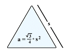 L’aire du triangle équilatéral est ( coté ² x racine de 3 ) / 4. Donc dans ce cas : ( 3 x racine de 3) /4 = 1,2990381…