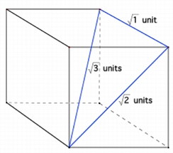 On retrouve la racine de 3 dans la géométrie du cube. Si on a un cube avec un côté de 1, alors la diagonale du cube est racine de 3 :