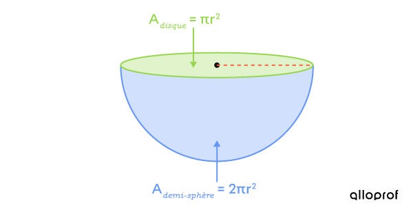 ou on peut dire aussi que l’aire d’une demi-sphère est égale à 2 fois l’aire du disque :